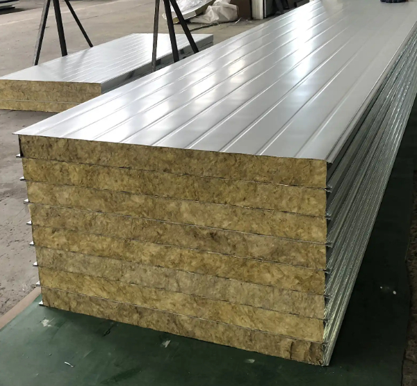 彩钢岩棉复合板在工艺上经粘合、加压、修边、压槽、落料、形成qi口式复合板,整体性好,刚度高,并具有抗冲击、抗腐蚀性能及保温、隔热、隔音、防潮等特点